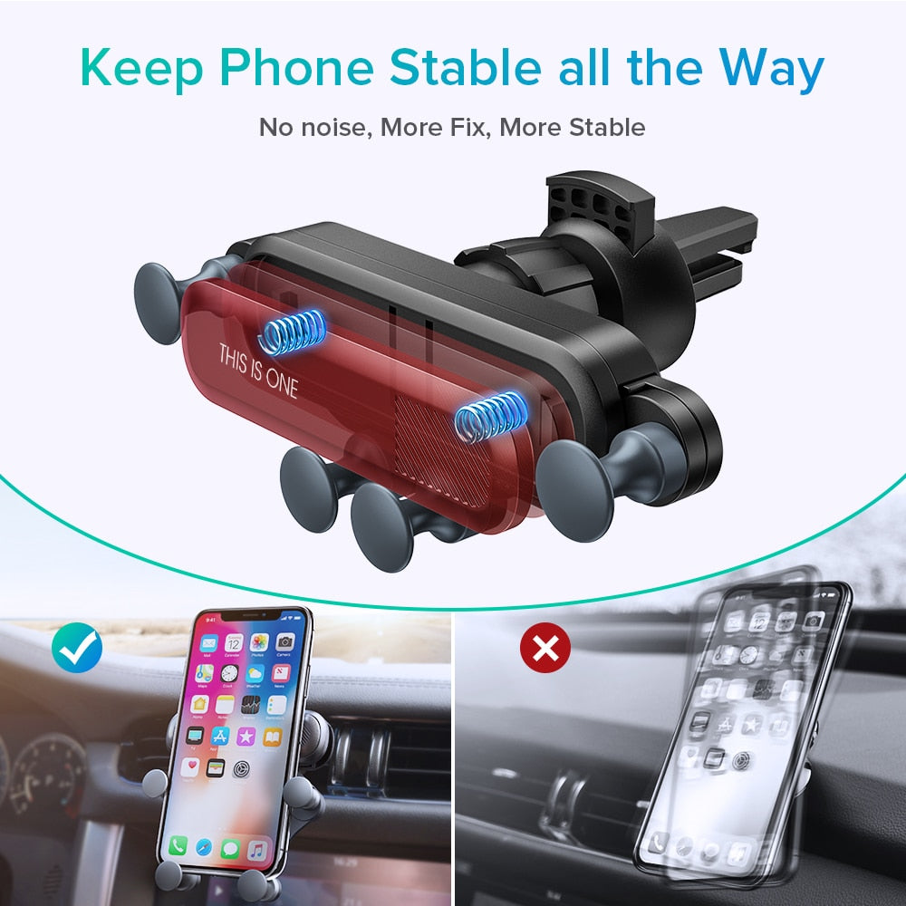 - Functions as an air vent mount GPS stand, cellphone support bracket, and 360-degree clip mount in car